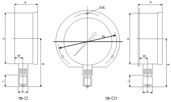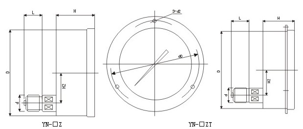 3、儀表公稱直公徑:Φ40mm;Φ50mm;Φ60mm; Φl00mm;Φ150mm